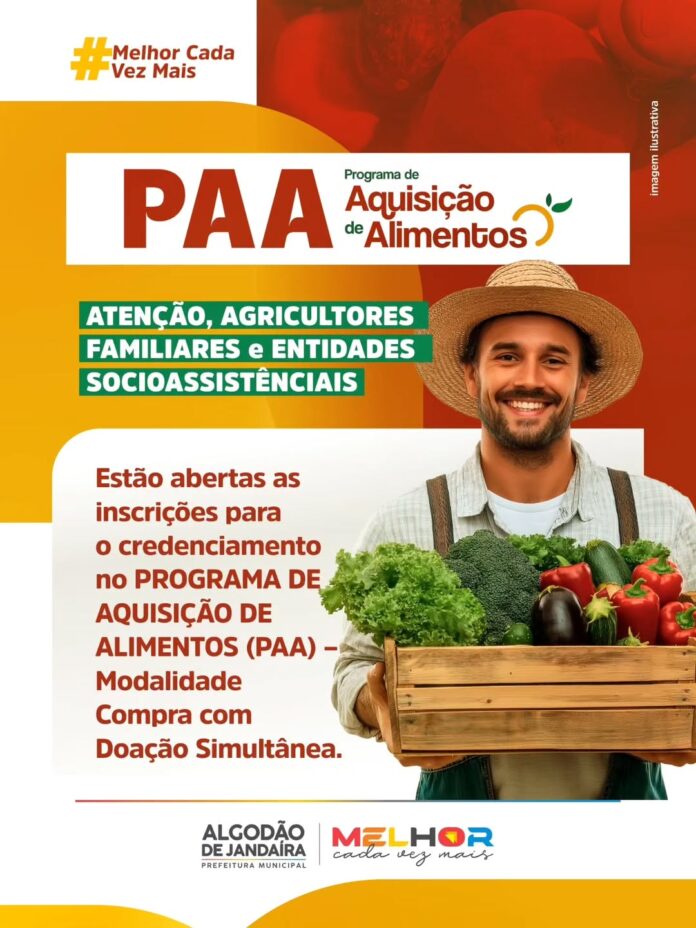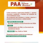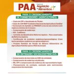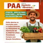 As inscrições estão abertas para o credenciamento no PROGRAMA DE AQUISIÇÃO DE ALIMENTOS (PAA) – modalidade Compra com Doação Simultânea.
