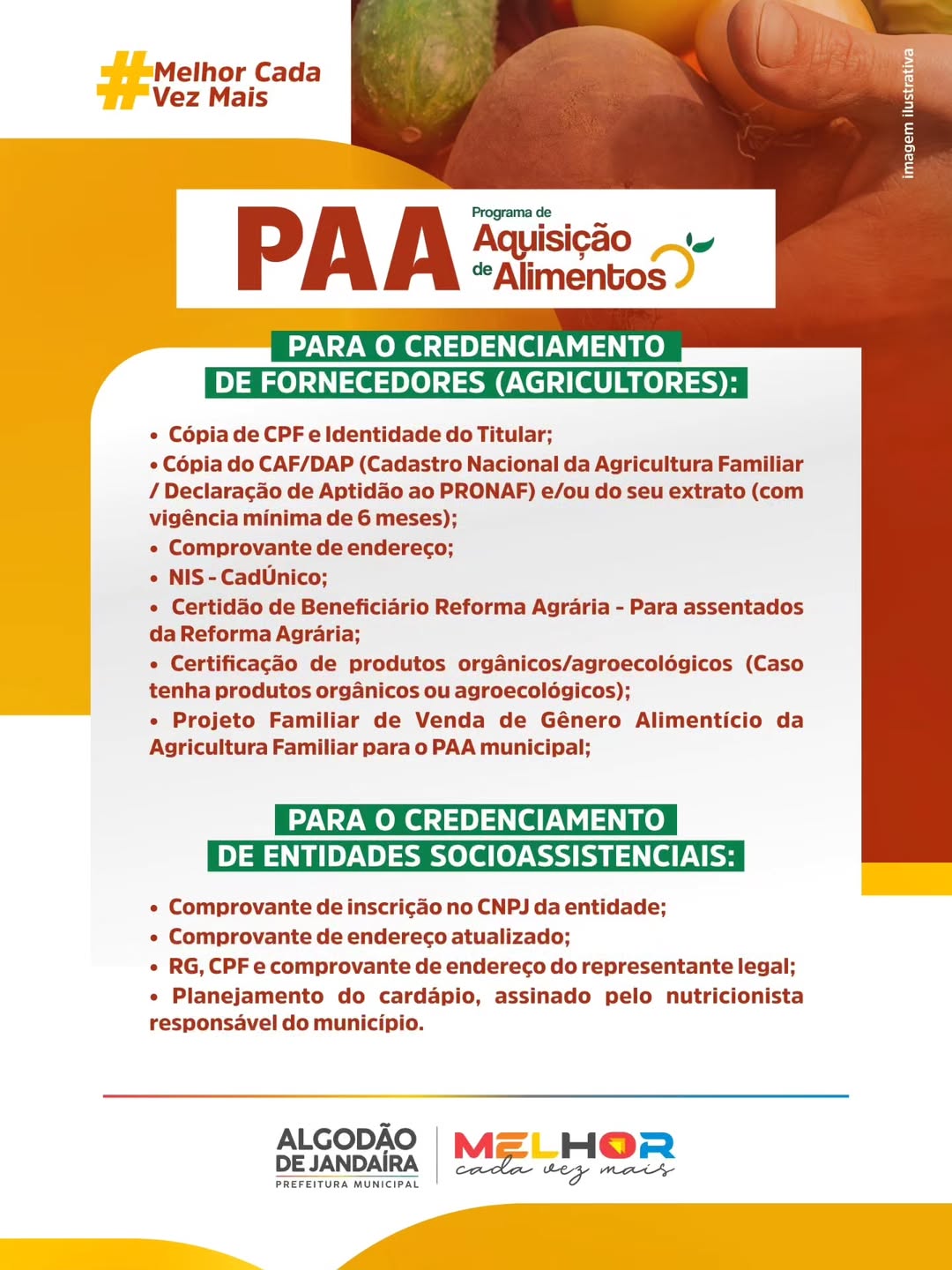 Home Notícias ATENÇÃO AGRICULTORES: FAMILIARES E ENTIDADES SOCIOASSISTENCIAIS